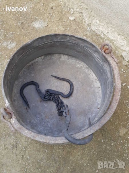 Голям меден котел с верига- около 30 литра. Състояние и размери- видно от снимките.
