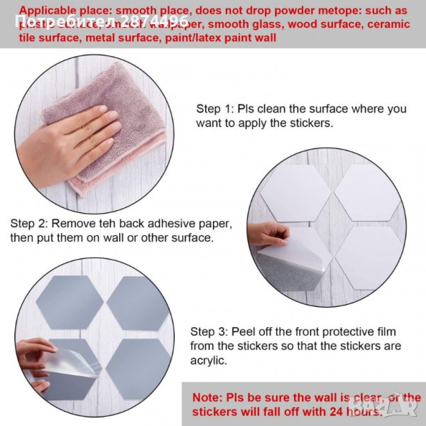 С тези самозалепващи огледални плочки ще промените и оживите интериора за минути, ще добавите осезаемо усещане за пространство, интересни отражения и игри на светлините у дома. Шестоъгълната форма /пчелна пита/ позволява разнообразие от комбинации и дизайни.