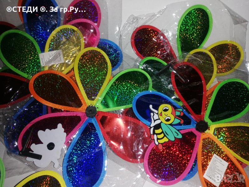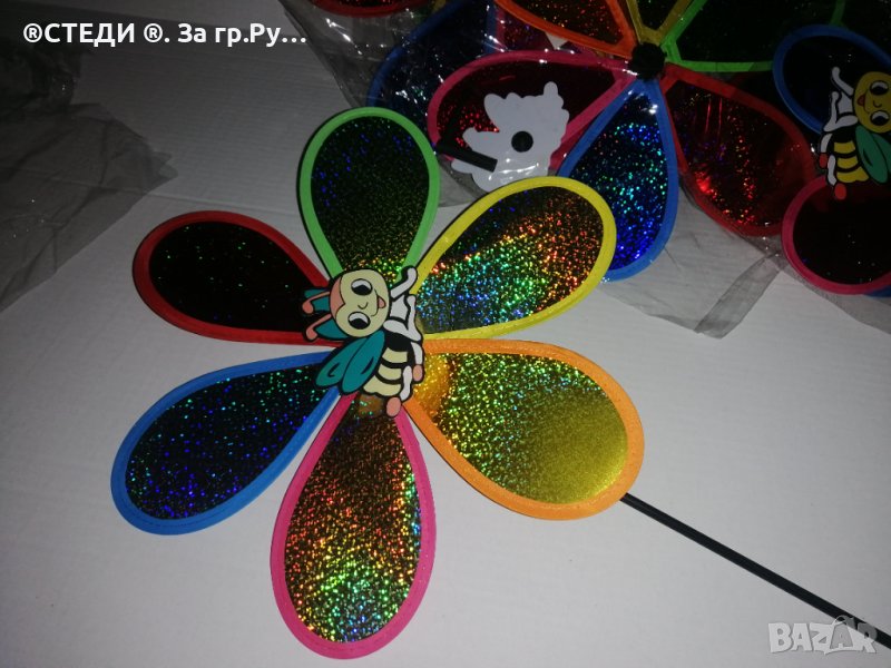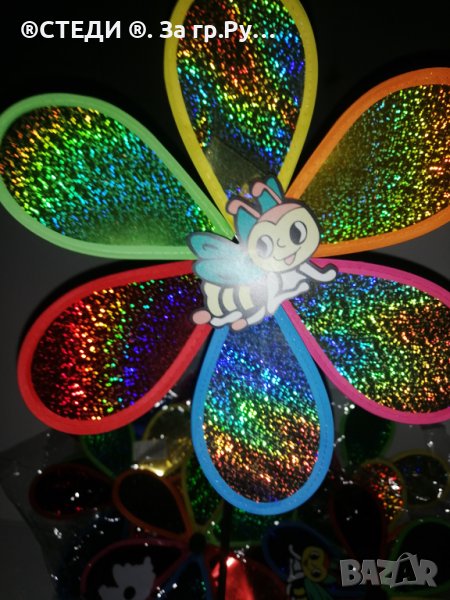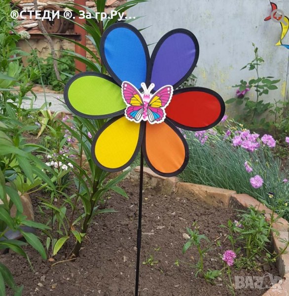 Декорация за градина, балкони, саксии – вятърна въртележка с форма на цвете и животинче отпред. Ветровъртележка в свежи ярки цветове, които ще внесат лятно настроение, където и да ги поставиш. Въртележките се въртят от вятъра. Може да я поставиш в градината като декорация или в саксия. N8br