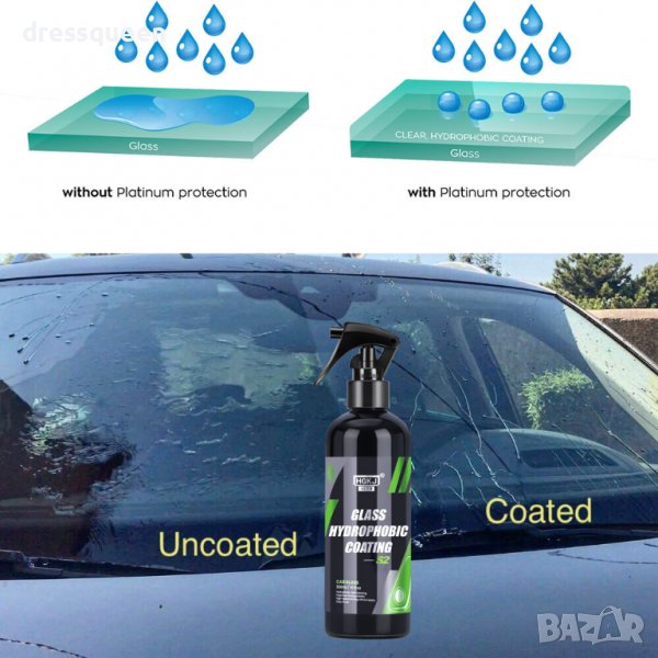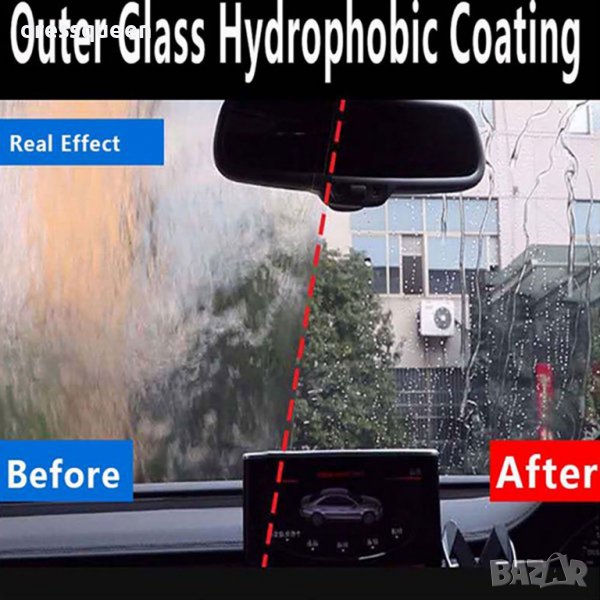Репелента против дъжд е напълно професионално хидрофобно покритие за стъкла. Благодарение на него стъклото става изключително гладко, а поривът на въздуха лесно отблъсква капки вода, мръсотия и сняг от него. Ефектът на самооттичане на водата от стъклената повърхност се вижда от скорост от 45 км/ч , като колкото по-висока е скоростта или интензивността на валежите, толкова по-ефективен е антидъжд препарата с ефект на невидимата чистачка.