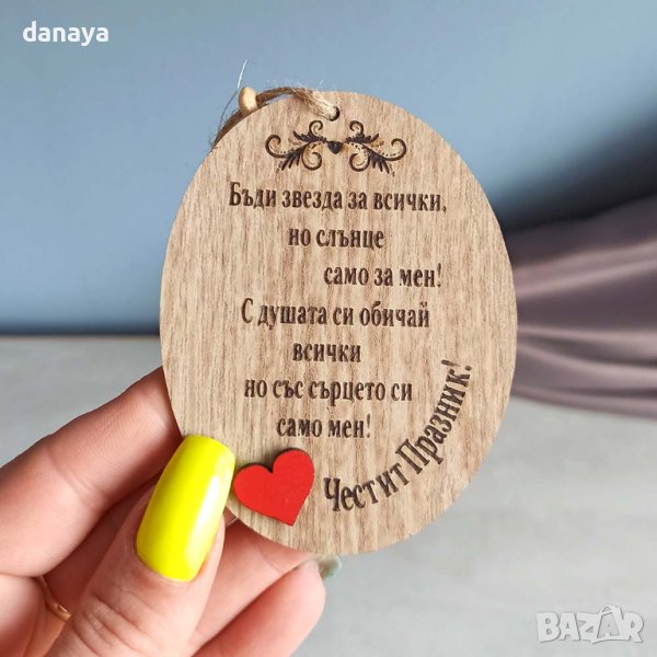 Декоративна дървена плочка в овална форма с прочувствено послание към любимата жена –