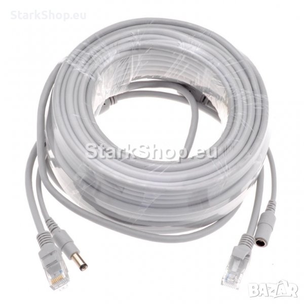 Супер практичен 2в1 Мрежов RJ45 и захранващ кабел за рутери, видеонаблюдение, NVR системи, IP / Wi-FI камери – 10 метра.