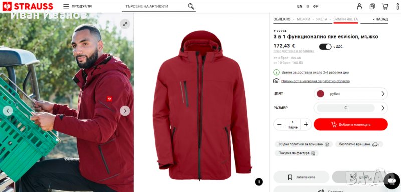 Вътрешното яке липсва , затова и цената е наполовина от магазинната .