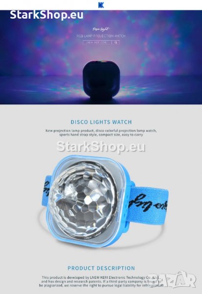 ДИСКО ПАРТИ RGB Часовник Smurf с лепка e атрактивна джаджа, „часовник“ с ластична каишка или вендуза за закачане на стъкло. Уредът има множество LED светлини и десетки фасети подобно на диамант. Светлините играят по фасетите и озаряват пространството с диско цветове. множество програми заз различни режими, включчително и цветомузика за светлинно шоу в ритъма на музиката.