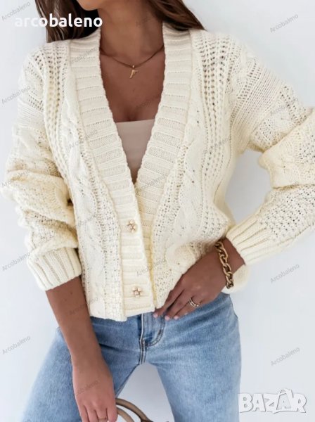 Нова ежедневна къса дамска жилетка (пуловер) с V-образно деколте и копчета