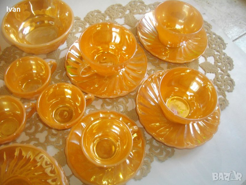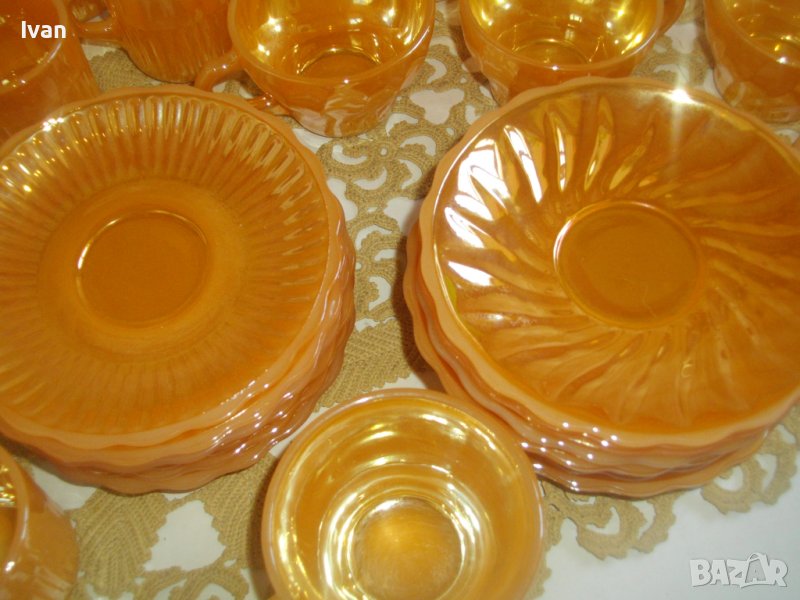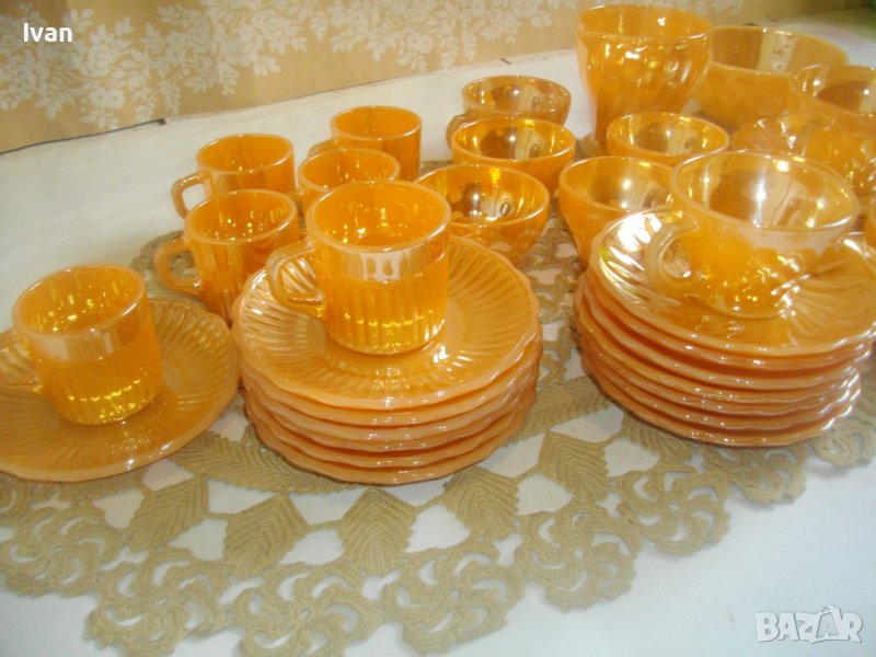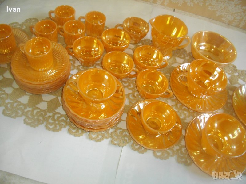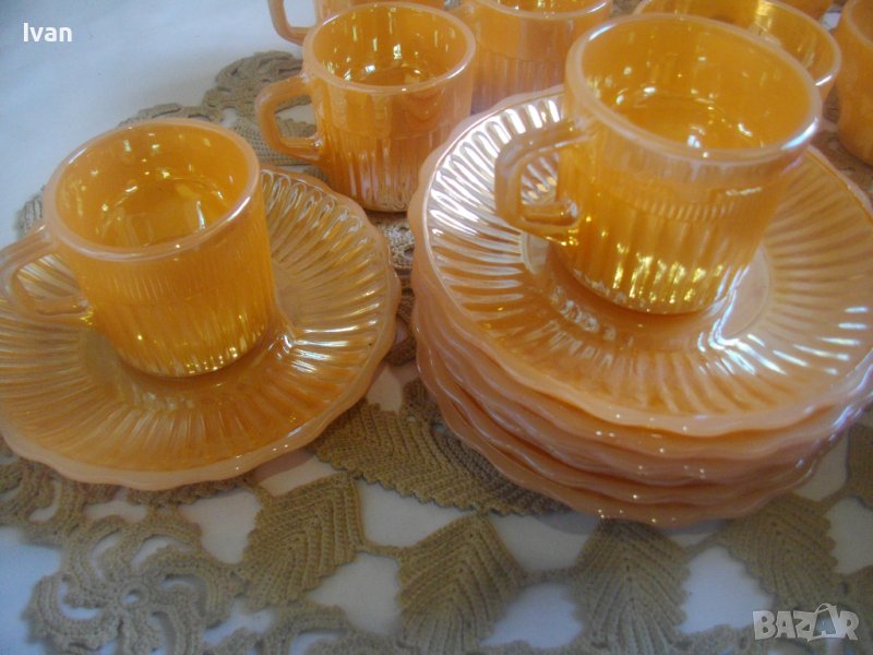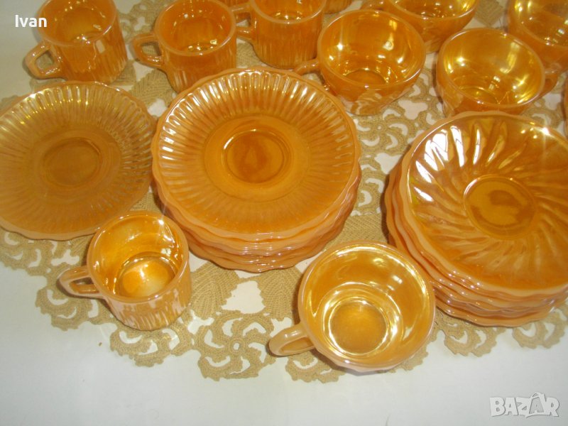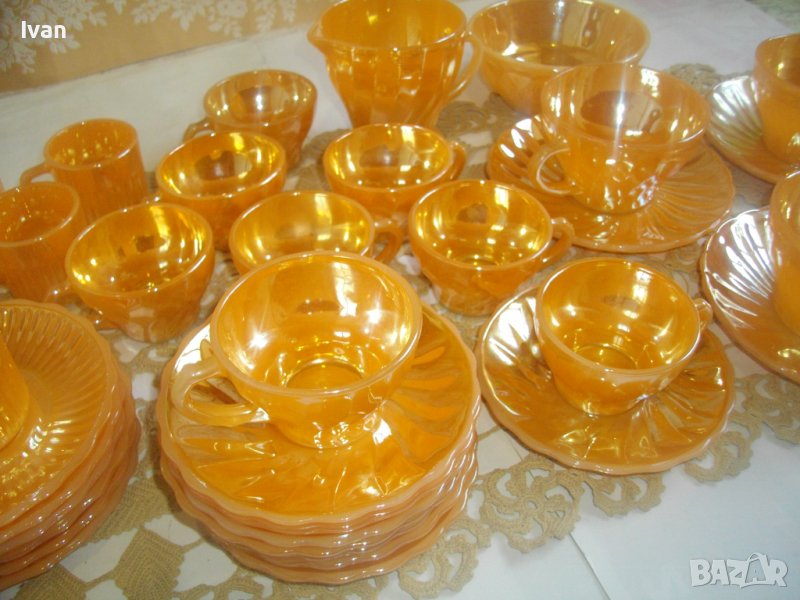Съвсем нов, неупотребяван голям сервиз винтидж FIRE KING ANCHOR HOCKING от 37 части за чай/кафе.