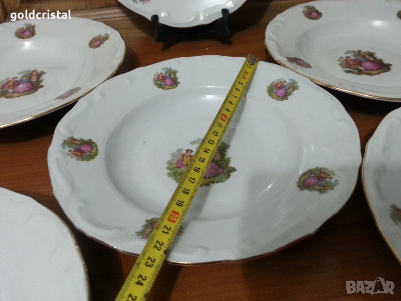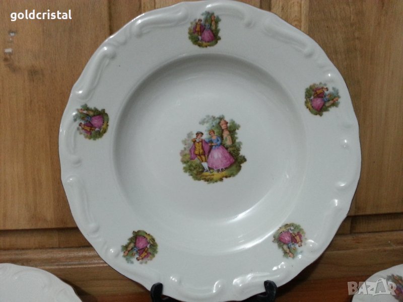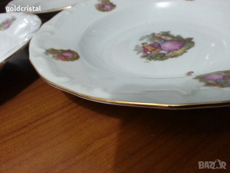 Стар български порцелан чинии дълбоки бараков релеф Изида златен кант Ромео и Жулиета дълбоки големи 6бр-65€ дълбоки малки 6 бр -55€ за основно 6 бр-79€ за предястие 6 бр-49€ елипси 6 бр-79€ елипси малки 6 бр-45€ голямо плато елипса с фабрична забележка -14€ сервиз комплект сет лот ретро арт декор винтидж колекция стари антикварни предмети обзавеждане за дома и семейството за основно 6 бр-145лв за предястие 6 бр-120лв елипси 6бр 149лв 3бр-75лв голяма елипса 50лв
