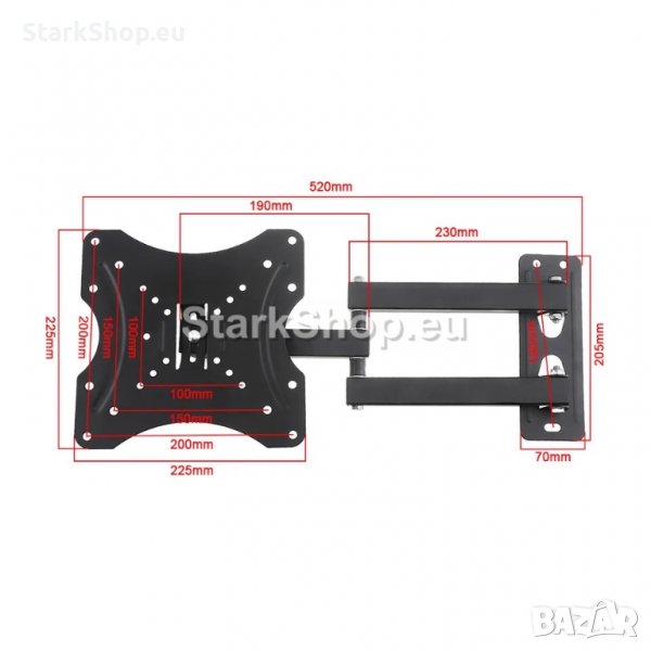 Изключително удобно за ъглов монтаж, благодарение на дизайна на дългите си въртящи се рамена. Позволява удължаване на екрана до 30 см от от стената