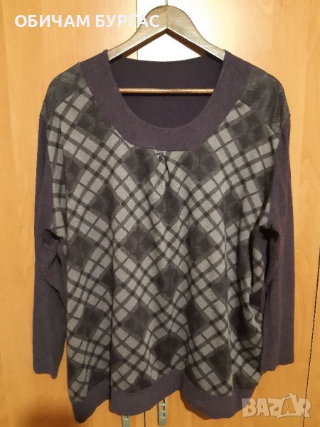 ЛИКВИДАЦИЯ 3XL КРАСИВА КАШМИРЕНА БЛУЗКА В ЛИЛАВО С ФИГУРИ → Обява 39897300