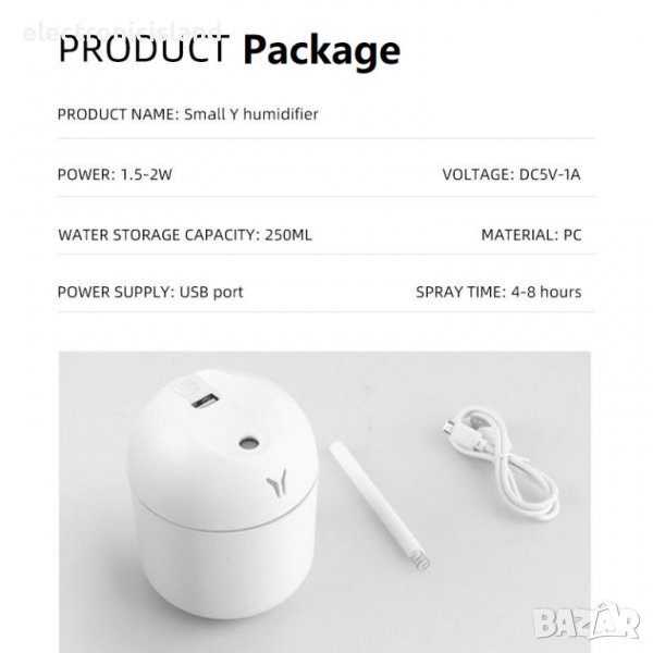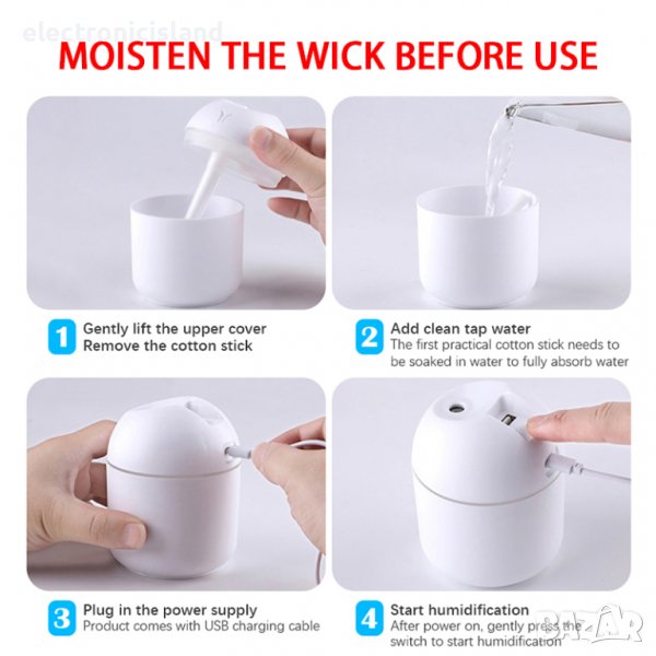 Малък овлажнител за въздух 250 мл с LED светлини 10 часа (нов)