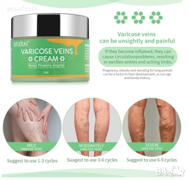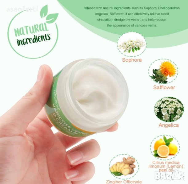крем за лечение на разширени вени с екстракт от Софора, Делодендрон, корен от Ангелика, цвят от Шафран, Джинджифил и Мента.