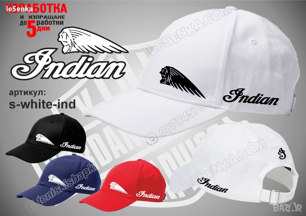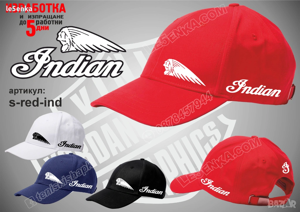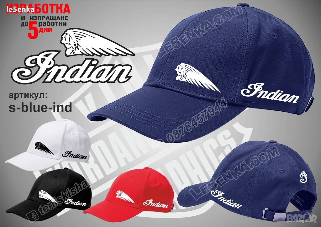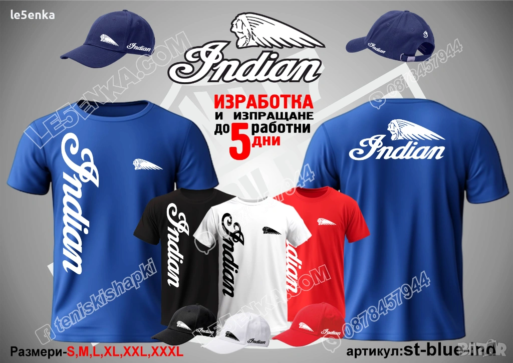 Посочената цена е за шапка и тениска комплект. Само шапка - 18 лв. ,а само тениска - 32 лв. Тениските са изработени от качествена памучна материя - различна номерация и цветове - черен, син, червен и бял. Шапките са памучни с метален клипс или коланче за регулиране - тип бейсболни. Последната снимка в обявата е на таблица с размери за тениските. Изпращаме по Еконт. Le5enka.com