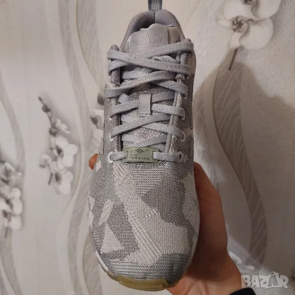 ZX Flux са изработени от мрежести горни части с платнена подплата, поставени върху EVA външна подметка с компресионно формоване и завършени със здрава контрастираща клетка на петата. Наследник на маратонките ZX 8000, технологията Torsion System позволява на средната част на стъпалото естествено да се приспособи към земята с високи нива на опора.