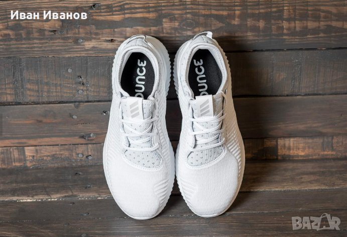 adidas Alphabounce са обувки с горна част, изработена от формован неопрен с междинна подметка BOUNCE, която осигурява максимален комфорт. Около глезена има подпънка с яка. Подметката ADIWEAR е адаптирана за дълги разходки.