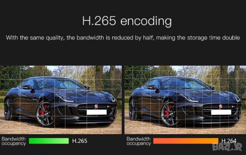 - Разликате при компресия H.265+, е че прави до 40% по малки записи в сравнение с H.264 с по-малък битрейт, което е в плюс ако интернет връзката е по-бавна, при това без да се разваля качеството на картина, дори нещо повече – контраста и цветовете са със една идея по-добри.