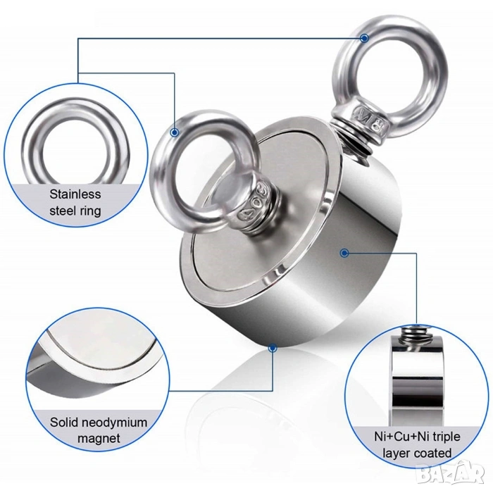 * Всички посочени по-горе данни за сила на магнита, са само за справка! Тези измервания, се извършват при идеални условия с помощта на професионално оборудване. В процеса на реално използване, идеалното напрежение не може да бъде постигнато и реално отговаря на около 70% от посоченото от производителя!