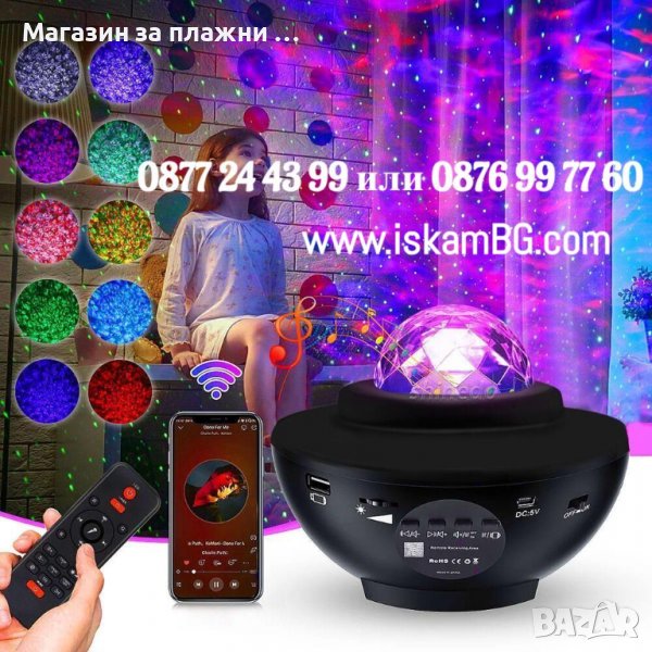 Страхотен RGB прожектор с вградена колонка с bluetooth. Проектираща лампа ще изпълни стаята с магически съзвездия, цветни картинки и неподозирани ефекти. Нежните светлини, които ще се гонят по стените и тавана действат успокояващо и приканват съня да дойде по-бързо. Колонката може да работи с USB(флашка) или блутут. От дистанционното можете да настройте лампата да свети с фабрично зададените програми или да изберете програмата при която светлината реагира на звуците. Също така може да се настройва след колко време да се изгаси(1 или 2ч.). Романтичен подарък или забавление за вашето дете, отличен избор за подарък по случай някой празник.