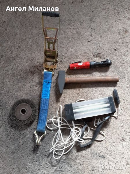 Продавам-аварйна лампа с опция фенер,мигаща жълта-червена светлина,лумицентна светлина за извършване на ремонт.Тречотка за клан работеща.Чук 1.5кг.от соца,истински.Четка за шмиргел-метална.Пневматична тречотка,за ремонт на манесман,не включена в цената,тя е подарък.