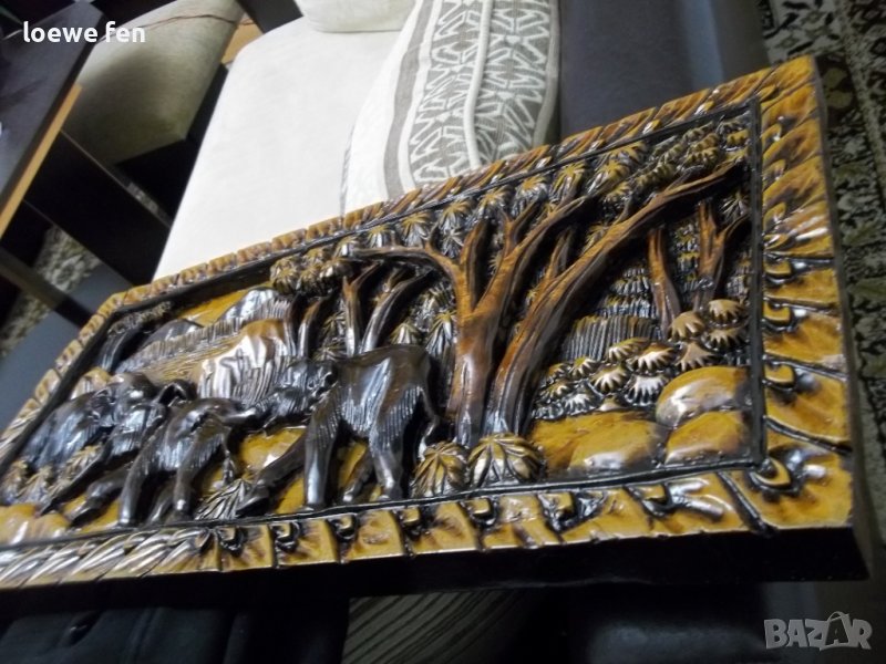 Тиково дърво...твърдо като камък! Дърворезбата е стара , но е като нова, с произход Зимбабве Африка ! Жестока е! Дълбок релеф! Тежи около 4 - 5 килограма! Пращам по Еконт само след предварително преведено капаро в размер на 10 лв!
