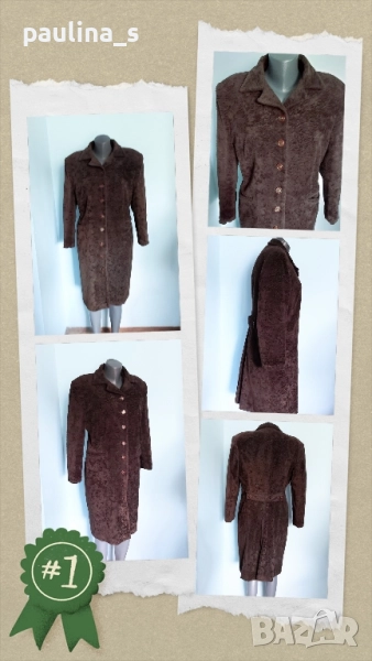 2️⃣. Колаж / L / 2XL - Палто ръчна изработка по модел на Бурда. Цената е крайна, без пазарлъци 30 евро. Стилно палто от еко кожа с релеф, дебела капитонирана подплата, шито е по модел на Burda - 42 / 44EU. Моделът е обран с филетки, с много прецизна изработка и изтънчен леко втален силует. Само материалите и копчетата са на по-висока от посочената цена!