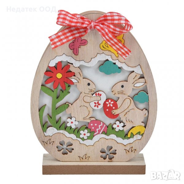 Великденска декорация, Яйце с със зайчета и карирана панделка, Дървена, 14x5x30 см, снимка 1 - Декорация за дома - 39913712 Великденска декорация, Яйце с със зайчета и карирана панделка, Дървена, 14x5x30 см, снимка 2 - Декорация за дома - 39913712 1/2