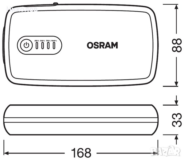 OSRAM BATTERYstart300 компактен литиево-кобалтов LiCoO2 стартов скок за малки до средни 12V превозни средства до 6L бензинови двигатели и 3L дизелови двигатели.