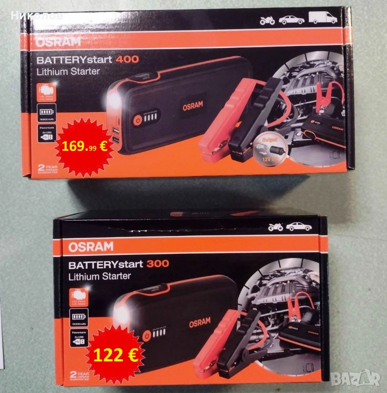 Външна батерия-бустер Osram Batterystart 400 за стартиране на двигателя, 16800mAh, 12V, 400-2000A - 169.99 €___ Магазин в София ул. Луи Айер 15