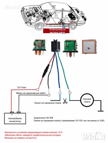 Захранване, контролна линия за прекъсване на горивната помпа