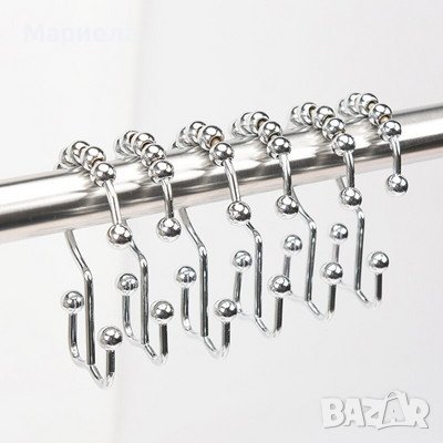 Куки за завеси за душ Amazon Basics, двустранни куки, цвят никел