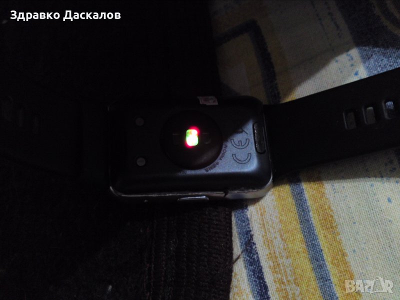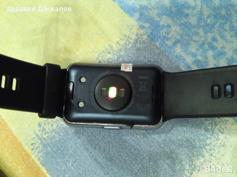 Часвоника е в отлично състояние,с лепенка на дисплея.Има проблем,който не е ясно какъв е.Като се сложи на зарядно се включва с надписа Huawei ,който след зареждане на системата изчезва и екрана остава тъмен.макар че часовника работи-вижда се как присветва отзад сензора.Екрана не светва.