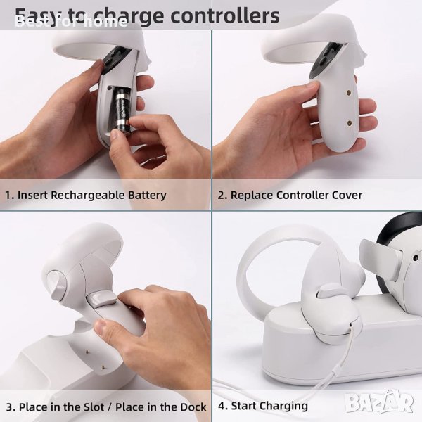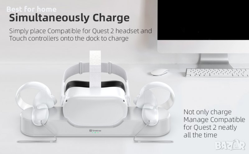 Smatree зареждане на док, съвместим за Oculus Quest 2/Meta Quest 2, VR контролер и зареждане на слуш