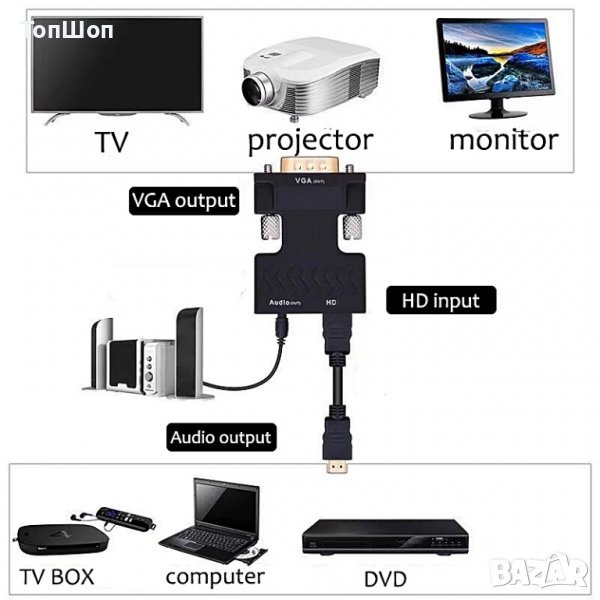 Адаптер HDMI към VGA + audio конвертор HDMI to VGA