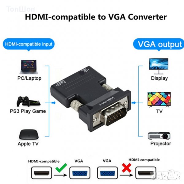 към мъжки кабели за HDTV монитор проектор PC PS3 адаптер конвертор HDMI към VGA адаптерът поддържа видео резолюции до пълни 1080P, което го прави удобна опция за приложения с висока разделителна способност и разполага с компактен дизайн без външен източник на енергия, който гарантира преносимо решение, което е лесно за носене като аксесоар.