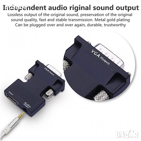 Hdmi адаптер мама към VGA татко + аудио конвертор, който поддържа 1080P сигнал
