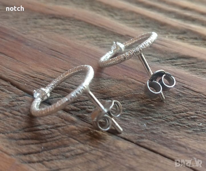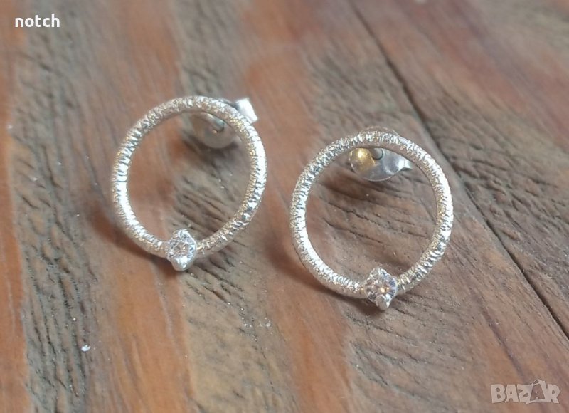 Обеците са изработени от сребро проба 925. Диаметъра им е 1.7см. Камъните са циркони 2.25мм.