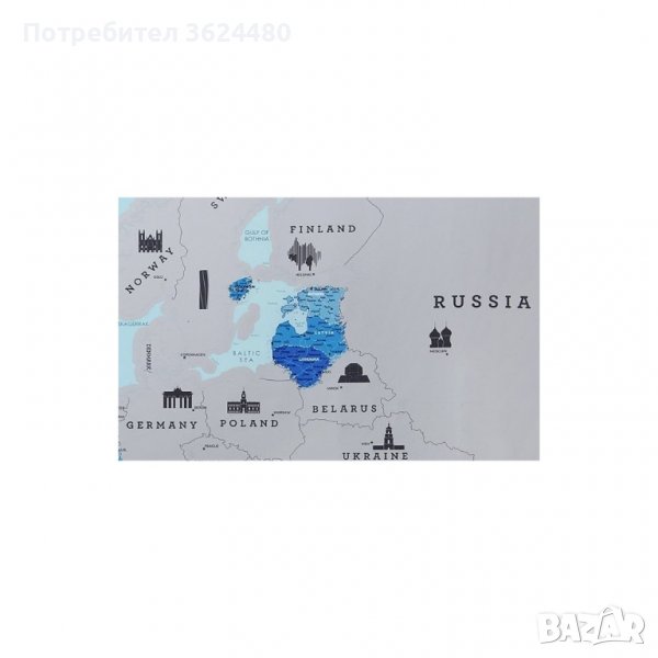 Освен познатите държави, на картата са изобразени и символите на основни забележителности, които трябва да посетите.