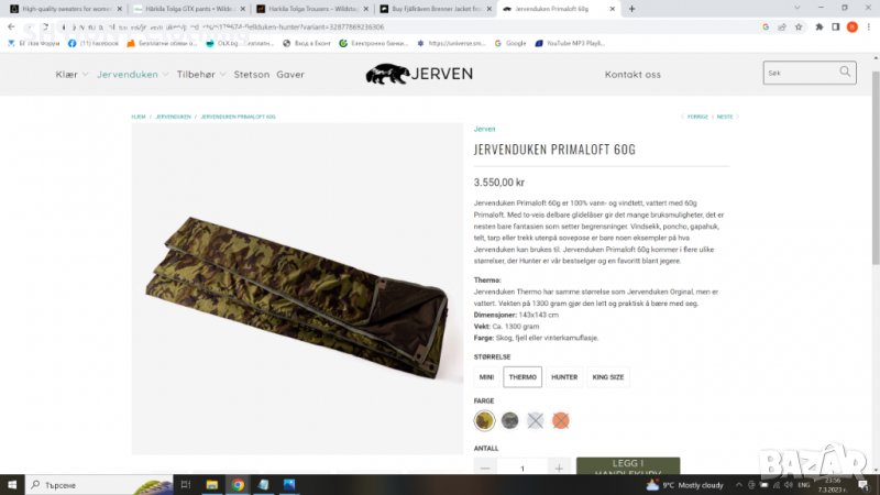 брезент или покривало върху спален чувал са само няколко примера за това, за какво може да се използва Jervenduken. Кърпата за вълци Primaloft 60g се предлага в няколко различни размера, където Hunter е нашият бестселър и любим сред ловците.