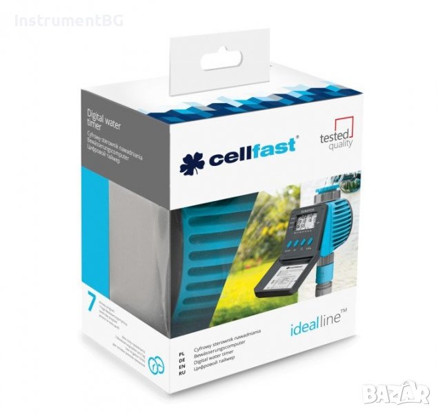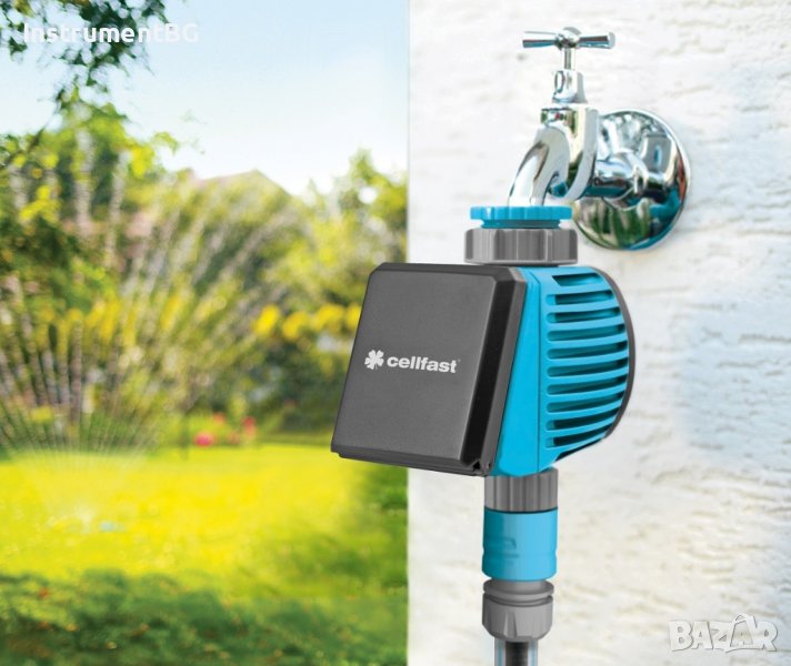 Цифровият контролер за напояване от Cellfast е идеалното решение за всяка градина. Трябва само да монтирате устройството като съединител между крана и маркуча за напояване и да го програмирате. Снабден е с дисплей с кормилен модул, който прави тази задача изключително лесна. Контролерът автоматично ще активира водния поток в предварително програмираното време и ще започне да полива или пръска. Това е идеално спестяване на време за всички градинари. Предлаганото тук устройство също ви позволява да поливате растенията рано сутрин, в най-удобното време за растенията.