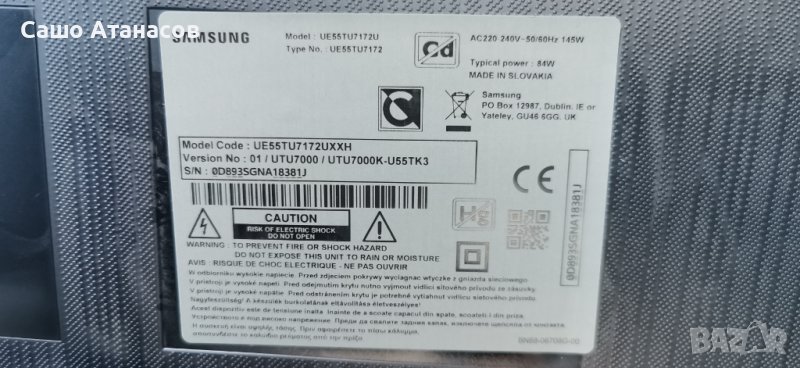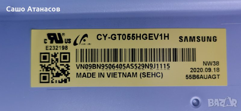 SAMSUNG UE55TU7172U със счупена матрица ,BN96-51850G / KANT-SU2_6900_5055 REV:1.6 ,CY-GT055HGEV1H