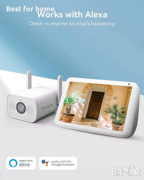 Бърза инсталация и лесна настройка на мобилно приложение: Домашната охранителна камера Blurams осигурява бърза и лесна инсталация. С IP66 водоустойчив корпус няма да се налага да се притеснявате за излагане на външни елементи, независимо къде го монтирате. Нещо повече, външната камера може да работи с устройства Amazon Alexa и Google Assistant, което ви позволява да гледате видео на живо от камерата само като кажете няколко думи, вместо да отключвате телефона си, по-умно и по-удобно