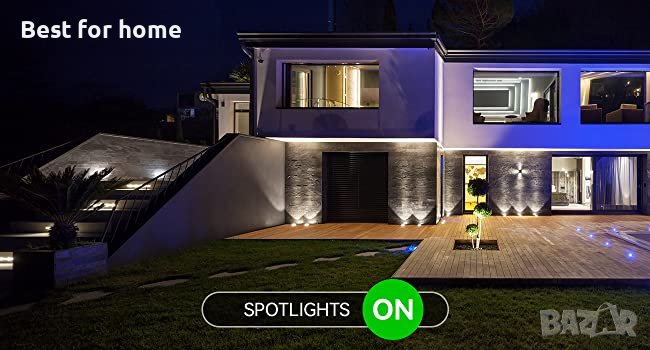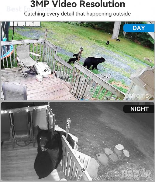 Допълнителни детайли с 3 MP резолюция и цветно нощно виждане: Камерата Spotlight предлага висококачествено визуално изживяване, супер ясно видео до 3 MP, което ви позволява да се наслаждавате на ултра-остри детайли, дори когато увеличите 4X. С включени ярки прожектори охранителната камера може да записва цветни изображения през нощта. С до 30 фута нощно виждане ще можете да следите всичко, което се случва във вашия имот