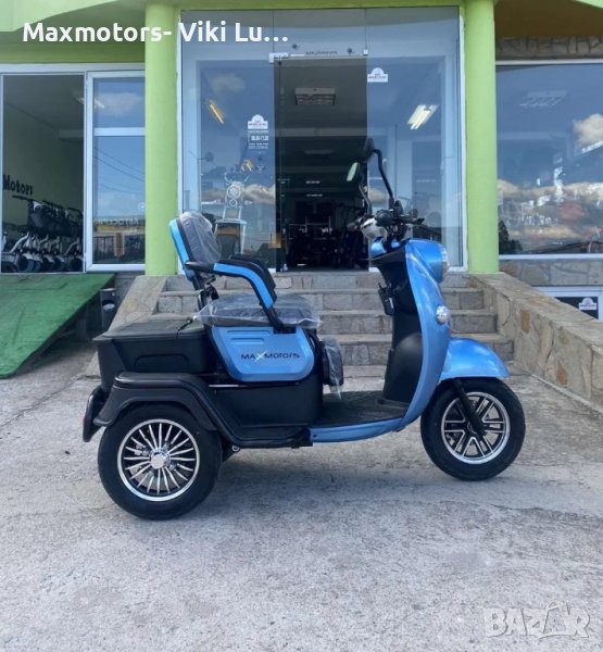 Уникална триместна триколка MaxMotors X2– без аналог на пазара – модел 2024 година. Триколката е с дигитално табло, три нива на скоростта, стопове, мигачи и габарити,LED фар. Предна и задна ръчни спирачки. Крачна спирачка. Голям кош за багаж. Триколката е с вградена втора седалка за допълнителен пасажер, като самата седалка се движи във височина, което създава удобство за нисък или висок човек + подарък трета малка седалка.