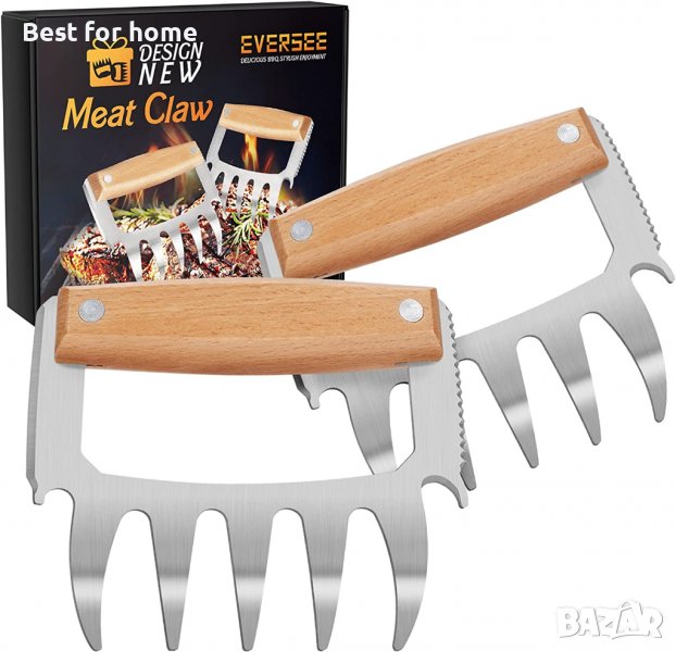 BBQ Meat Claw с ергономичен дизайн: EVERSEE meat claw приема концепция за ергономичен дизайн. Комбинацията от вилица и непроводима дръжка подобрява безопасността и ефективността на изтегленото месо. Формата на нетермопроводимата дръжка за месен нокът може напълно да пасне на формата на човешката длан, Извитите нокти могат лесно да издърпат месото с минимална сила, Достатъчно дълъг нокът за месо може да предпази ръцете ни от изгаряне от току-що излязлото горещо месо на фурната, Meat Claw е добър прибор за барбекю