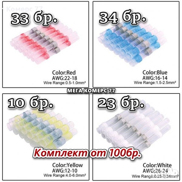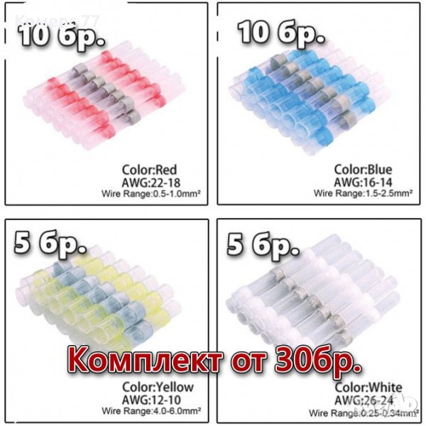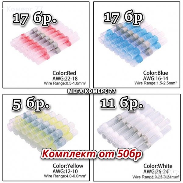 Конектори за запояване на проводници., снимка 1 - Поялници и запояване - 39930801 Конектори за запояване на проводници., снимка 2 - Поялници и запояване - 39930801 Конектори за запояване на проводници., снимка 3 - Поялници и запояване - 39930801 Конектори за запояване на проводници., снимка 4 - Поялници и запояване - 39930801 Конектори за запояване на проводници., снимка 5 - Поялници и запояване - 39930801 Конектори за запояване на проводници., снимка 6 - Поялници и запояване - 39930801 Конектори за запояване на проводници., снимка 7 - Поялници и запояване - 39930801 1/7