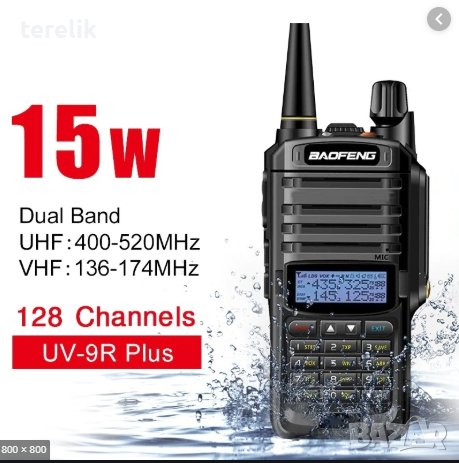 Представяме Ви най-новият модел професионална радиостанция Baofeng UV-9R! Моделът е с множество подобрения и иновации, увеличен обхват и дълготрайна батерия. Станцията е супер устойчива и херметична, изцяло ударо, прахо и водо устойчива и може да работи под вода. Уникална станция независеща от околната среда, влажност или запрашеност, която има възможност да следи и двете честоти едновременно - Simplex TDR function. Обхватът е забележителен - 20-30 км в гора или пресечена местност. Напълно подходяща за лов, риболов с лодки, къмпинг, ски, планинарство, охранители и служители на молове, ресторанти или търговски комплекси.