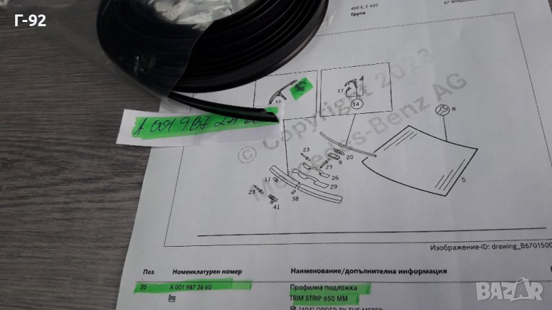 A0019872460**НОВА**MERCEDES-BENZ**УПЛЪТНЕНИЕ ЗА ПРЕДНО СТЪКЛО**W124**12.1984-03.1998**