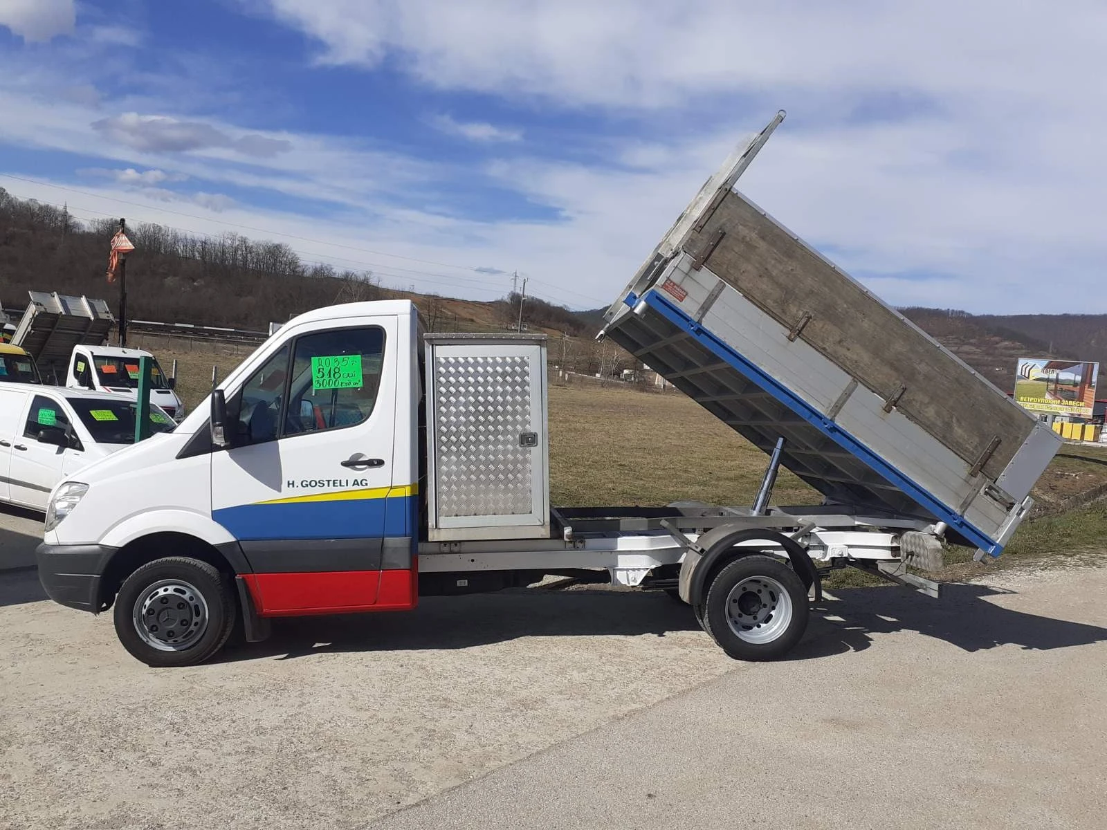 . . . MERCEDES SPRINTER. 518. CDi . . . . . . 3000. КУБ. СМ. 180. К. С. V-ОБРАЗНИЯ МОТОР . . . . . . ТРИСТРАНЕН САМОСВАЛ С ОРИГИНАЛЕН АЛУМИНИЕВ КОШ . . . . . . НОВ ВНОС ШВЕЙЦАРИЯ . . . . . . ДО 3, 5. ТОНА . . . . . . УПРАВЛЯВА СЕ С КАТЕГОРИЯ. . . . Б. . . . И ВИНЕТКА ЗА ЛЕК АВТОМОБИЛ . . . . . . НОВИ ГУМИ 6. БРОЯ . . . РАЗМЕРИ НА КАРОСЕРИЯТА: 3, 00 МЕТРА ДЪЛЖИНА 2, 05 МЕТРА ШИРИНА 0, 80 МЕТРА ВИСОЧИНА ! ! ! ВЪЗМОЖНОСТ ЗА ПАКЕТНИ ЦЕНИ ! ! ! . . . ВСИЧКО ПО ВНОСА Е ПЛАТЕНО - МИТО И ДДС . . . Съдействие за изкарване на транзитни номера, и документи за регистрация в КАТ на всички мои камиони, джипове и коли, продажба на фактура. Автокъщата разполага в наличност и по заявка, и с други камиончета, бусове, автомобили, джипове и мотори. Договаряне на GSM: 0887805737 0878805737