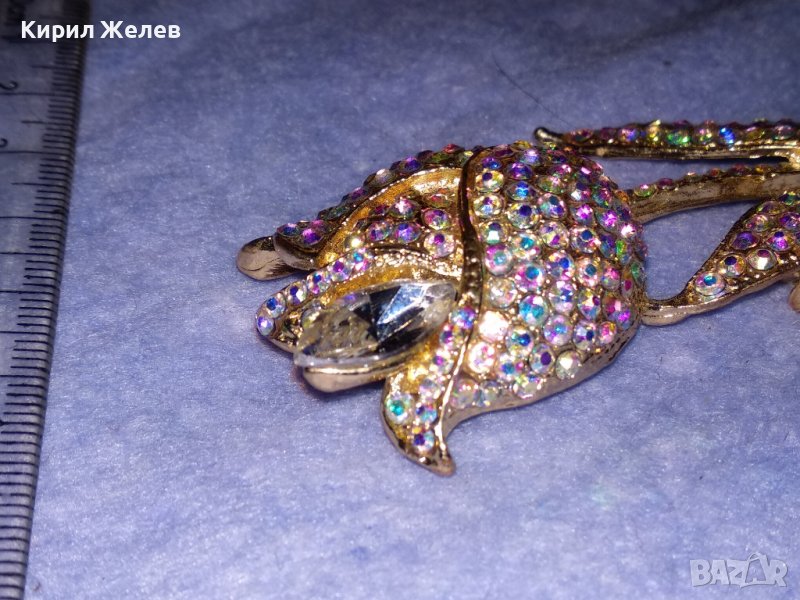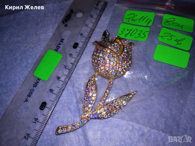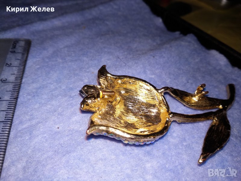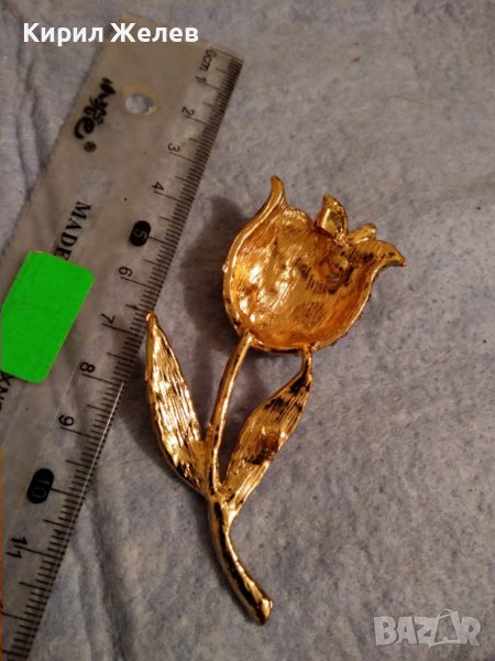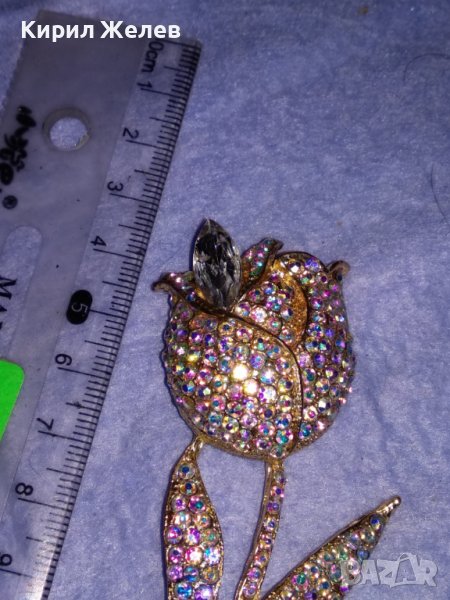 ПОЗЛАТЕНА ФЛОРАЛНА АР НУВО СТИЛ КРИСТАЛНА БРОНЗОВА БРОШКА ЦВЕТЕ / ЛИПСВА й ИГЛАТА! 37035