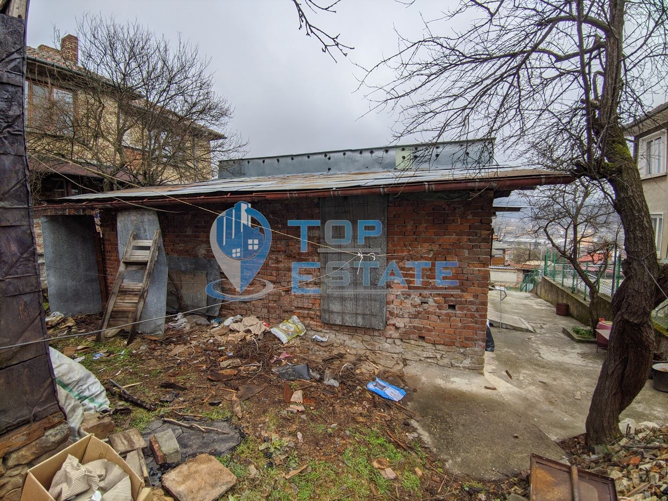 Топ Естейт Недвижими имоти Ви предлага едноетажна тухлена къща в град Трявна. Предлаганият имот се намира във високата част на града, на асфалтова улица с целогодишен достъп. Къщата се състои от трапезария и спалня в един обем, входно антре, мазе и баня с тоалетна. Къщата е тухлена с бетонна плоча, с възможност за построяване на втори етаж. Дворното място е с площ 345 кв. м, в него има стопанска постройка /навес/. Номер на оферта: 909. We speak English.