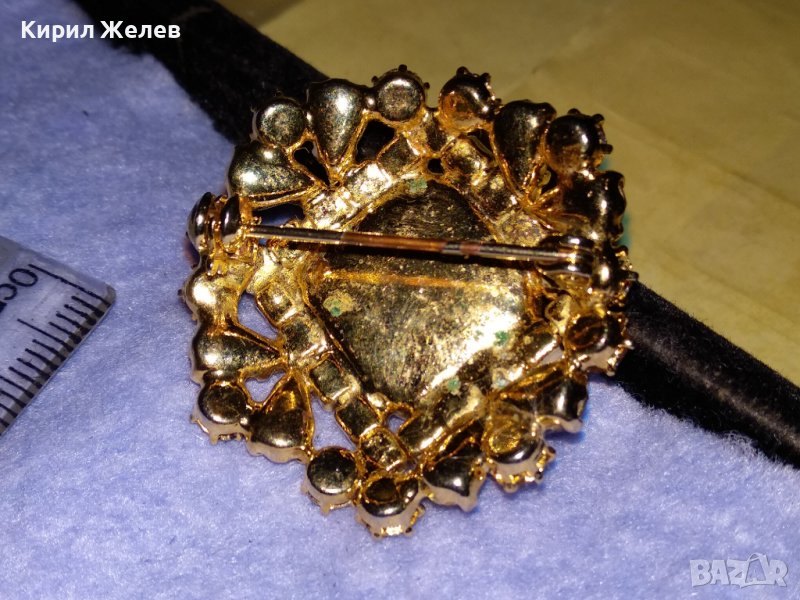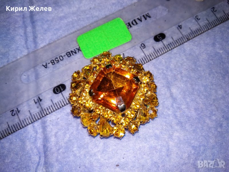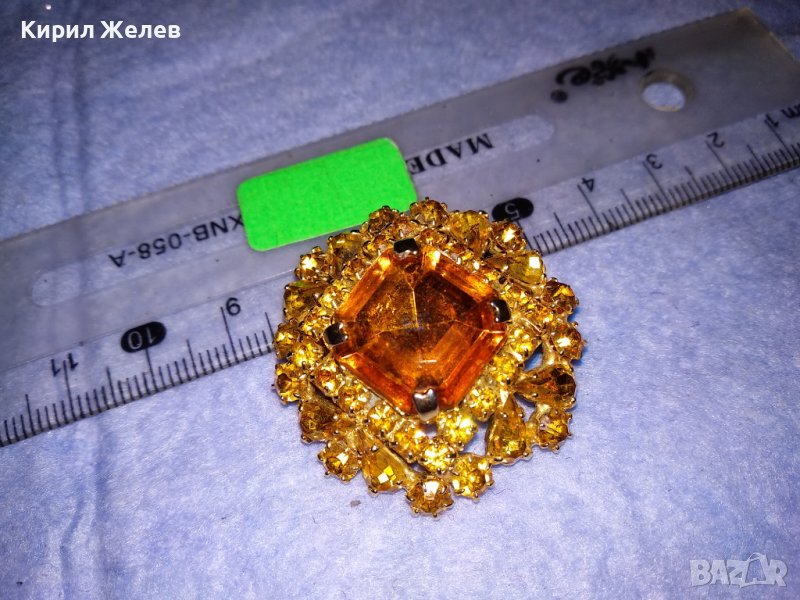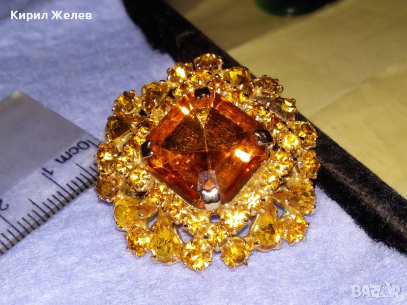 СТАРА ПОЗЛАТЕНА СКЪПОЦЕННА РЕТРО БРОШКА ЧЕХОСЛОВАЦИЯ с ФАСЕТИРАНИ ЮВЕЛИРНО КАМЪНИ ЦИТРИН 36460